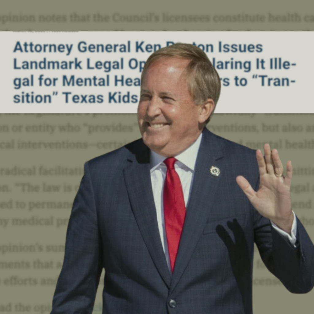 Texas Attorney General Ken Paxton has taken his war on wokeness to the next level. Paxton just released a Monday landmark legal opinion declaring it illegal for mental health providers to “transition” children.